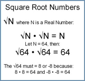 A square root of a number is a value that, when multiplied by itself, gives the number.